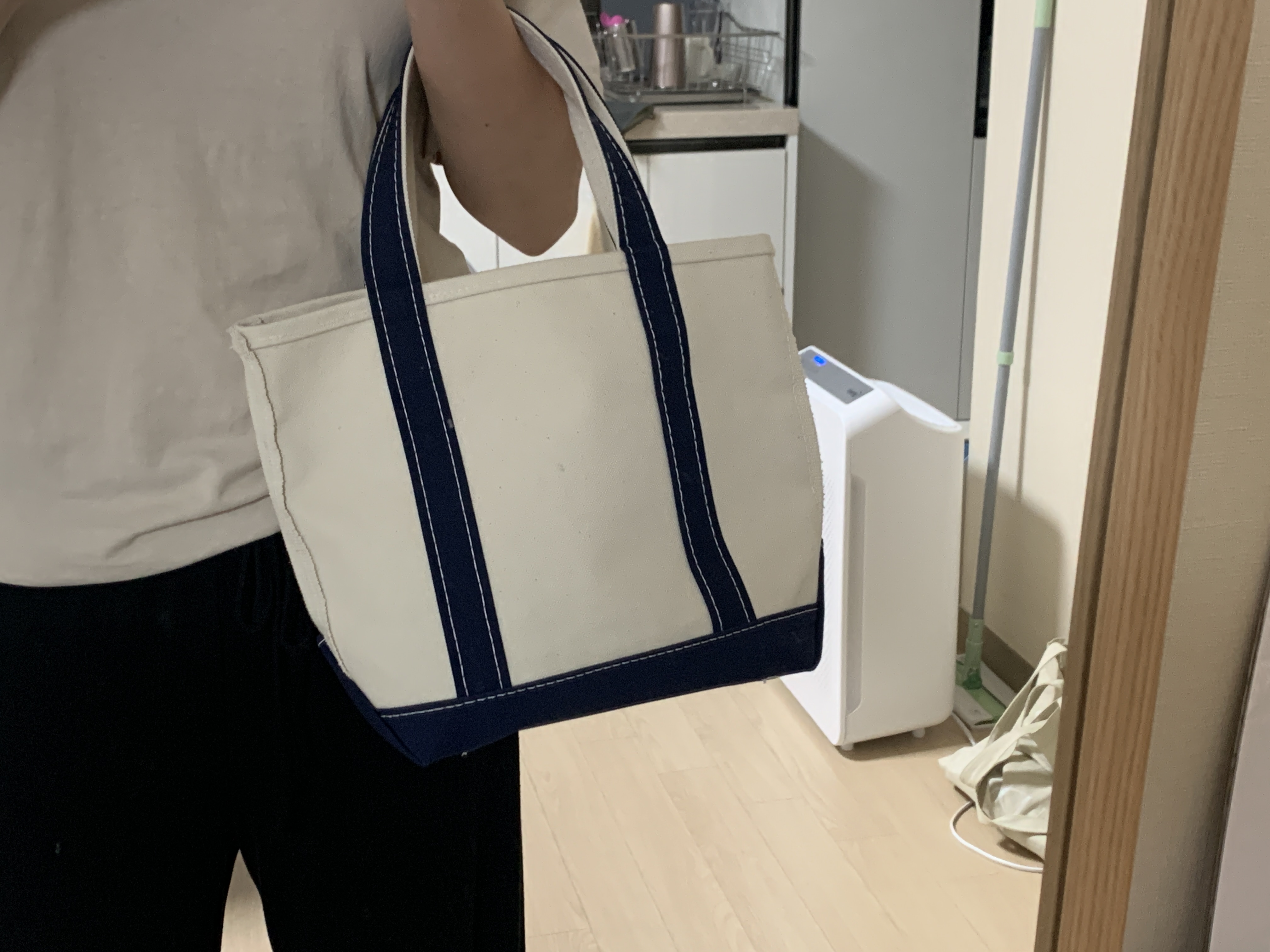그저 심플 그자체 컨버스백입니다. 예전에 쓰던 컨버스백은 양쪽에 외부주머니가 있었는데요. 일명 텀블러백이라고 해서 물통 넣고 다니기 좋았는데, 이건 아무것도 없는 디자인이라 아쉽긴 했어요. 하지만 엘엘빈만의 매력이라고 생각해서 만족한답니다.