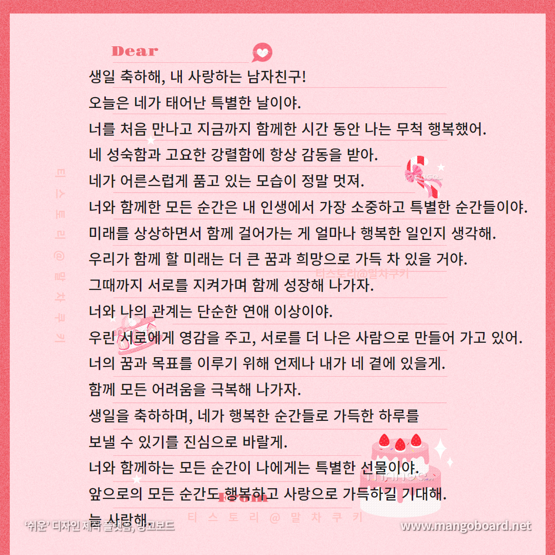 사랑스러운 여자친구의 생일편지에는 사랑하는 감정을 마무마구 쏟아 감동적인 멘트로 생일편지를 썼습니다!