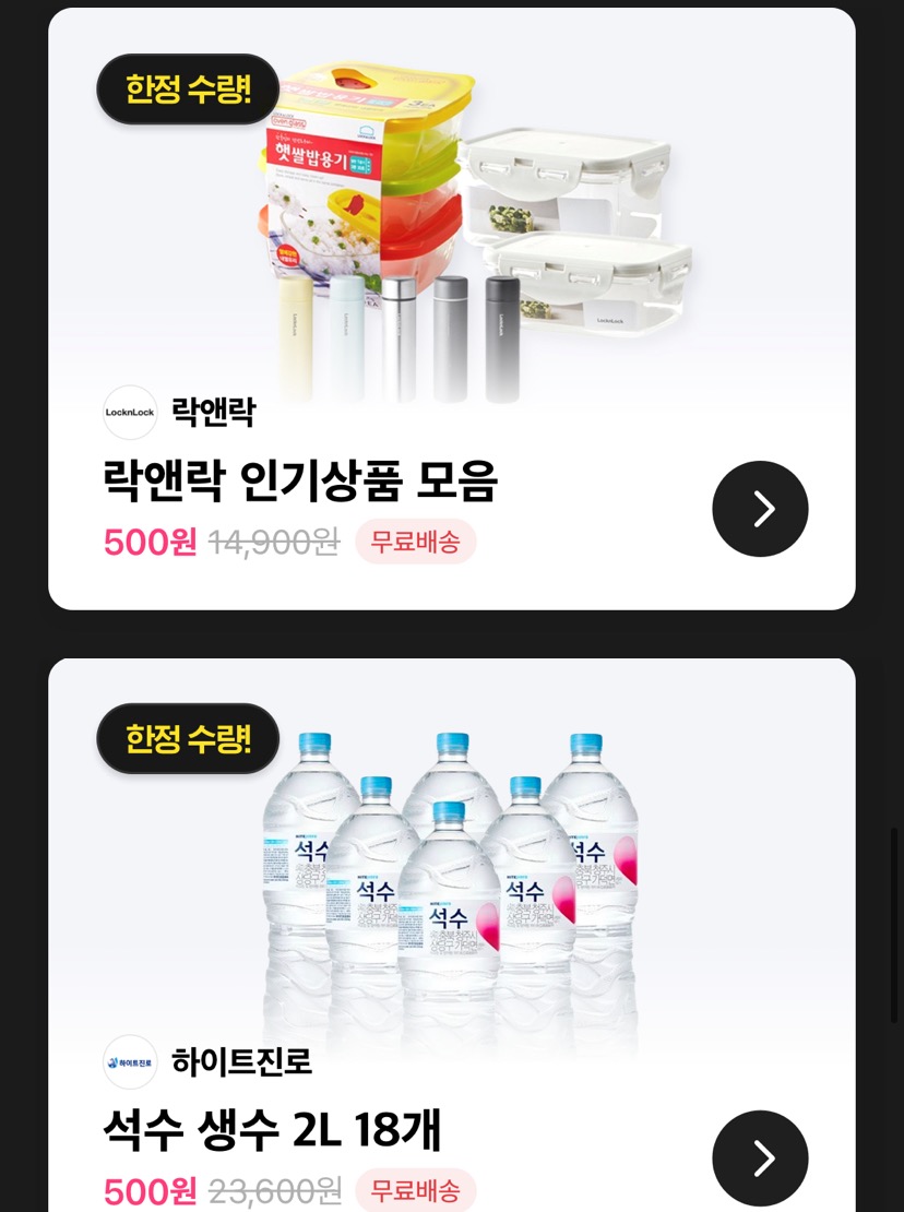 밑으로 내려보니 석수2L 18개를 500원에 살 수 있다는 게 너무 좋아서 자취하는 친구들한테 알려줬어요☺️